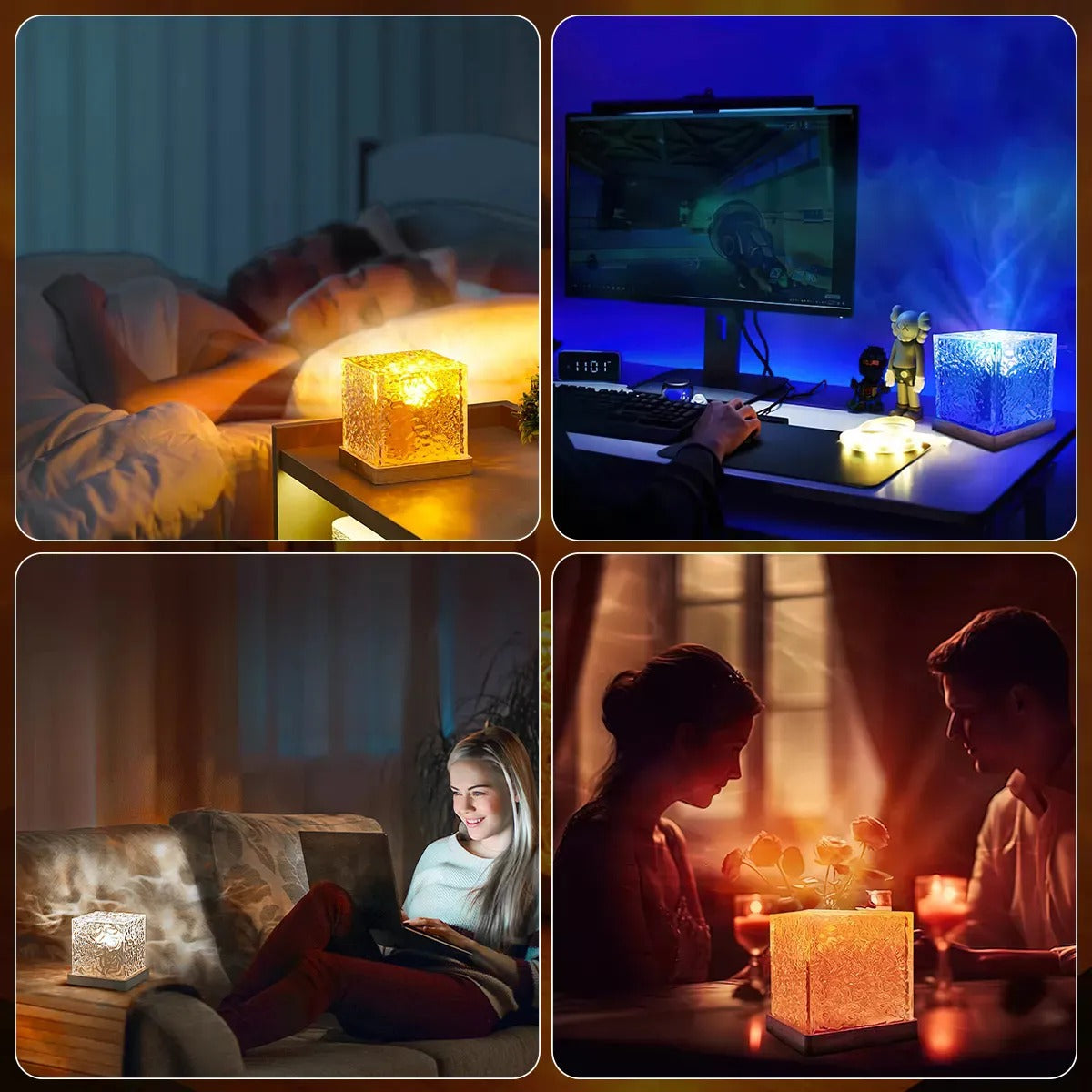 La Lámpara Aurora 3D™ – Efecto Cristal transforma cualquier habitación en un lugar cálido, moderno y lleno de estilo.